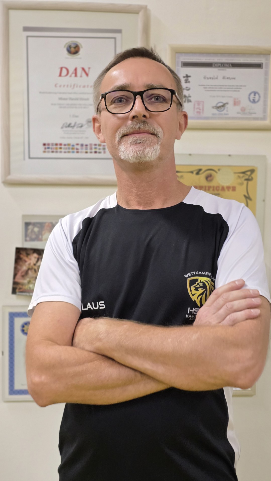 Harald Hirsch betreibt seit seinem 10. Lebensjahr Kampfsport. Unter anderem ist er Lebens & Sozialberater mit Schwerpunkt psychosoziale Beratung, Sozialpädagogik, ausgebildeter Lehrtrainer